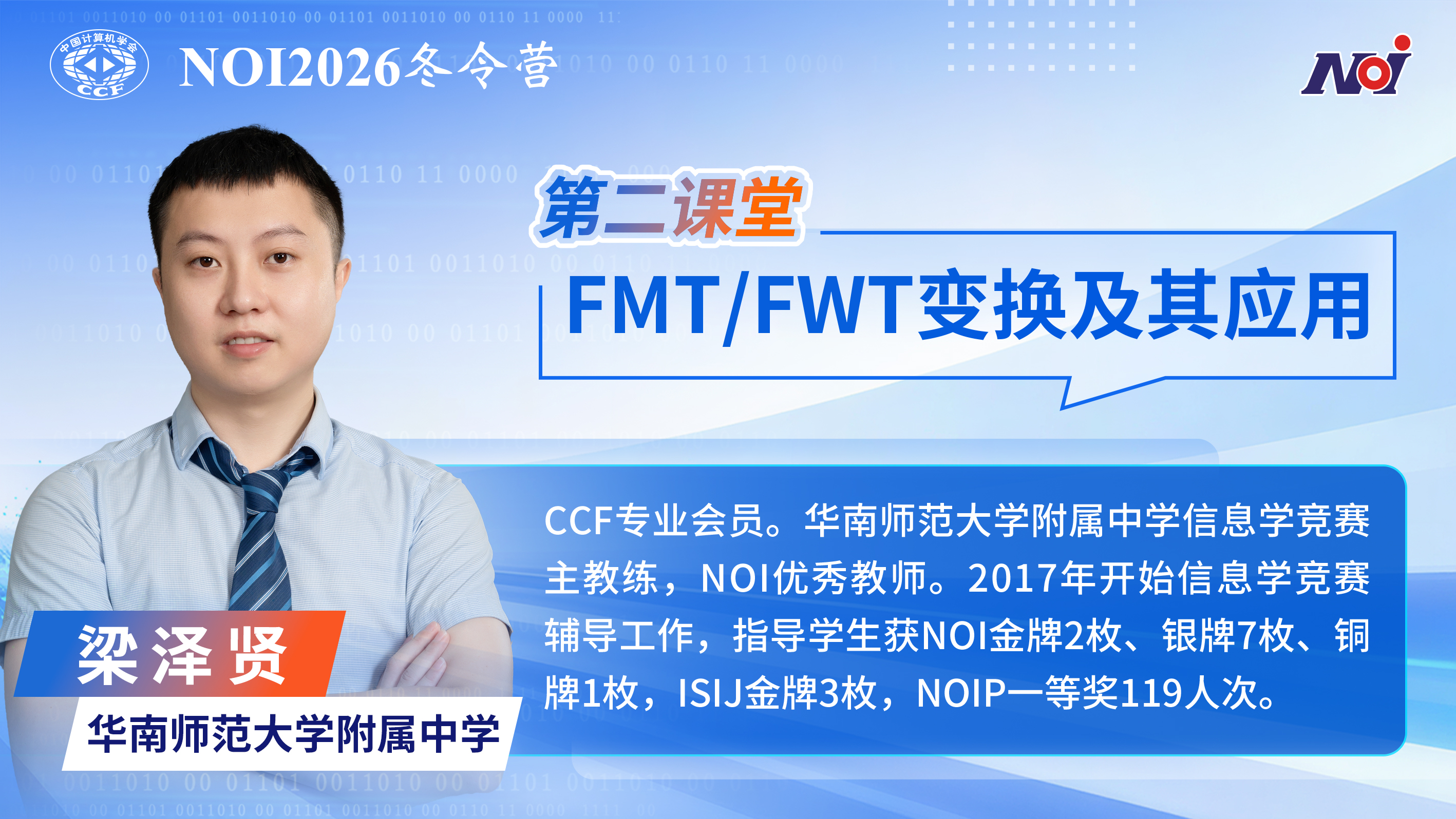 由CCF主办,青岛市城阳第一高级中学承办的2026全国青少年信息学奥林匹克竞赛冬令营(NOI2026冬令营)将于2026年2月6-13日在青岛举办。冬令营期间第二课堂讲者简介如下: