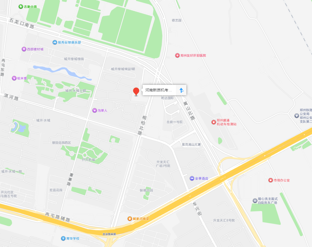 考点地址:河南新质机考研发中心(郑州市中原区桐柏北路100号,桐柏路与五龙口南路交叉口向南50米路西),地图定位见文后附件。