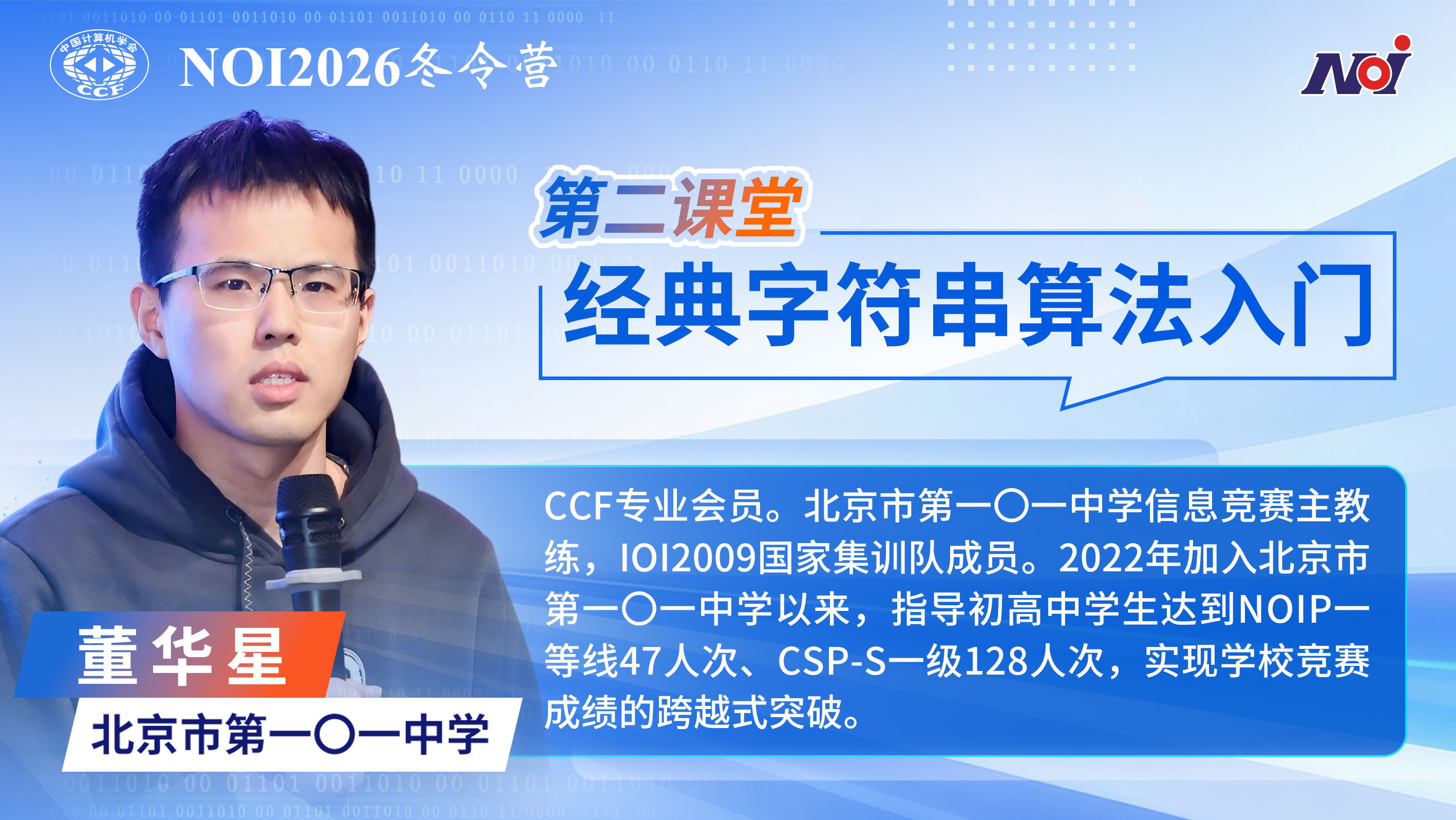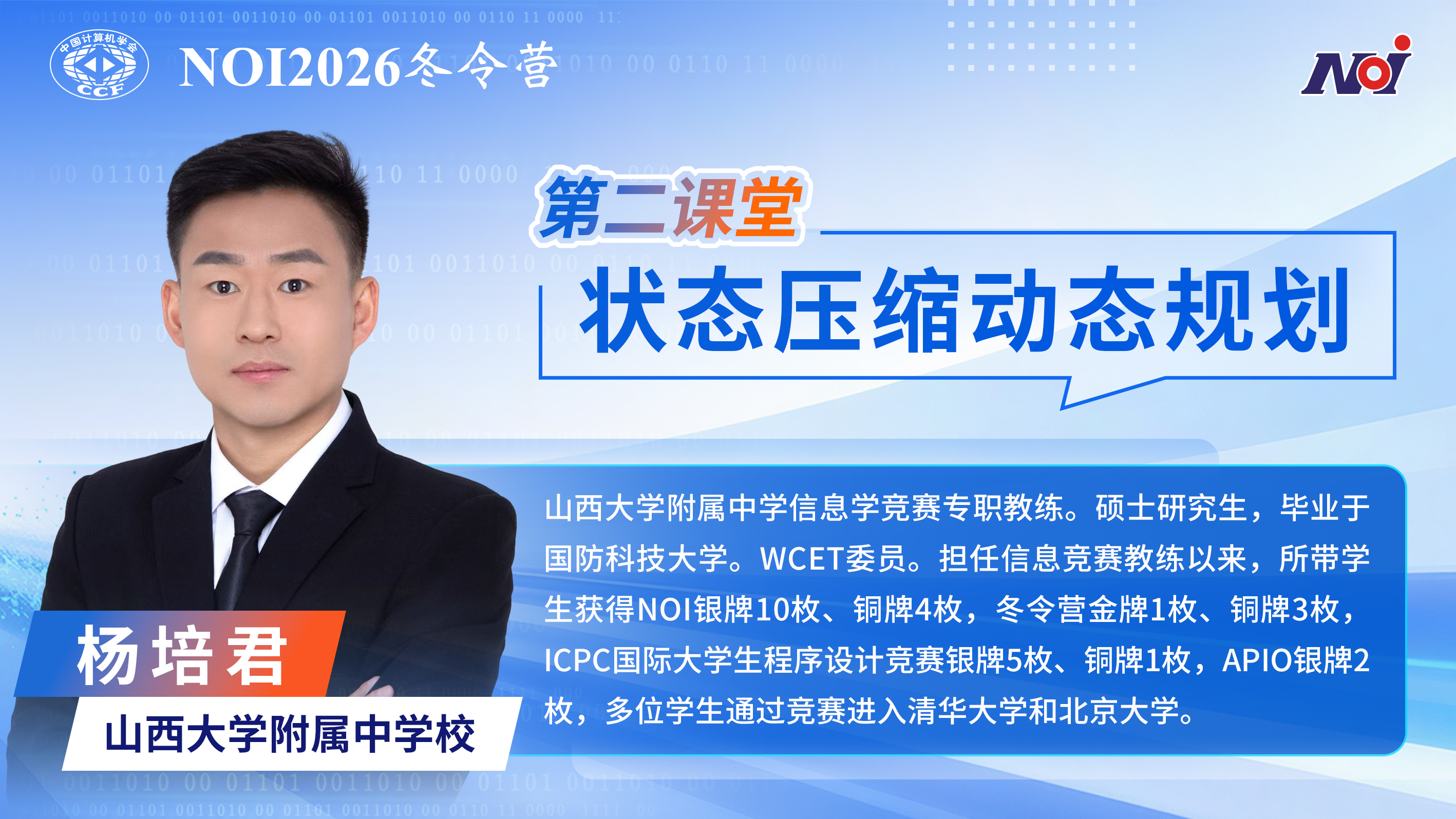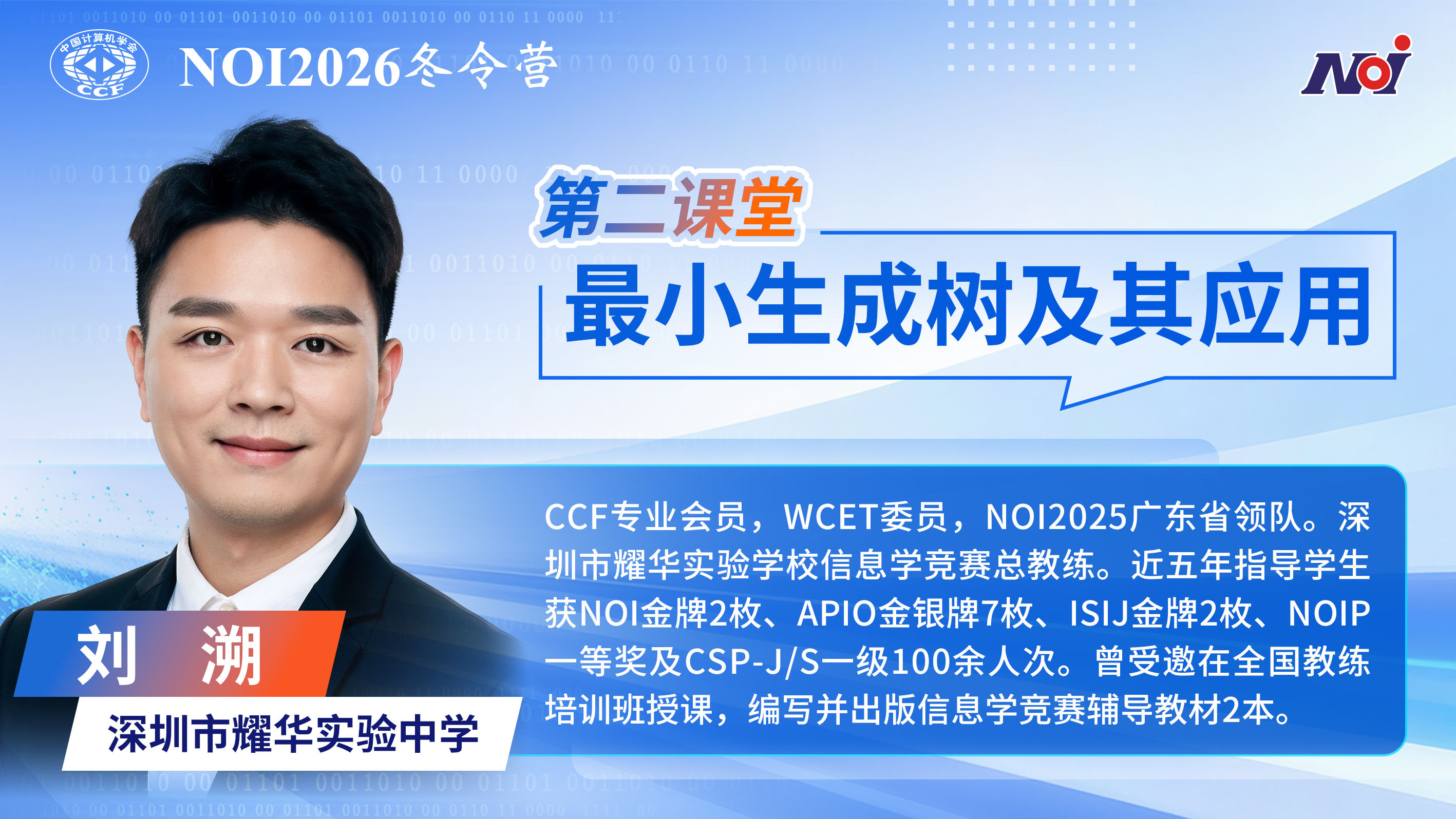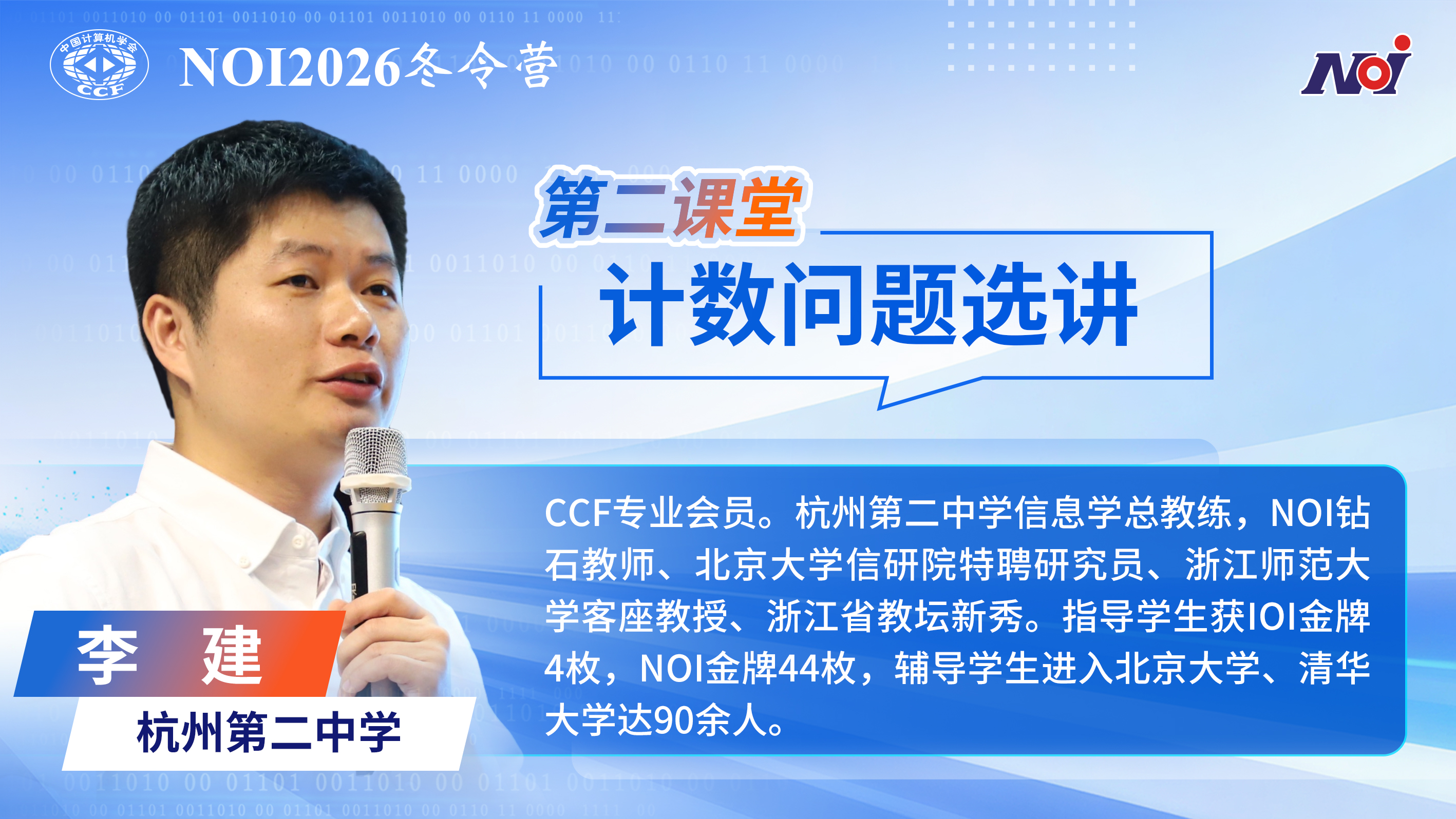 由CCF主办,青岛市城阳第一高级中学承办的2026全国青少年信息学奥林匹克竞赛冬令营(NOI2026冬令营)将于2026年2月6-13日在青岛举办。冬令营期间第二课堂讲者简介如下: